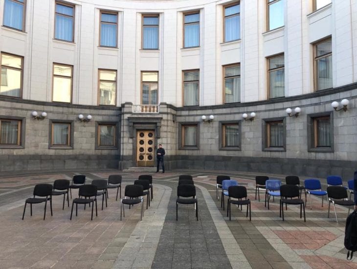 Вчера очередное пленарное заседание горсовета Днепра началось на улице, а после принятия нескольких решений депутаты переместились в свои кабинет и продолжили сессию в онлайн режиме. Но в Верховной Раде видимо, решили последовать примеру Днепра и тоже сделать заседание на улице. Об этом сообщила нардеп Яна Зінкевич.