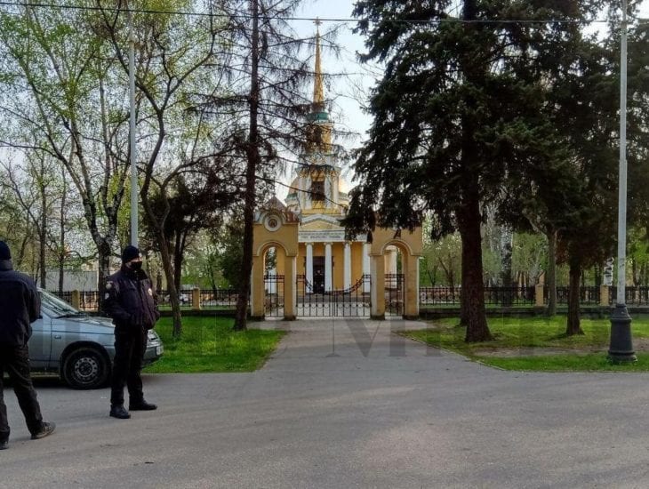 Возле соборов и церквей по всему городу людей нет. Возле Свято-Крестовоздвиженского храма на ж/м Покровский пусто. На ночную службу пустили только звонарей и священника. После нее, в 3 часа ночи, закрыли храм.