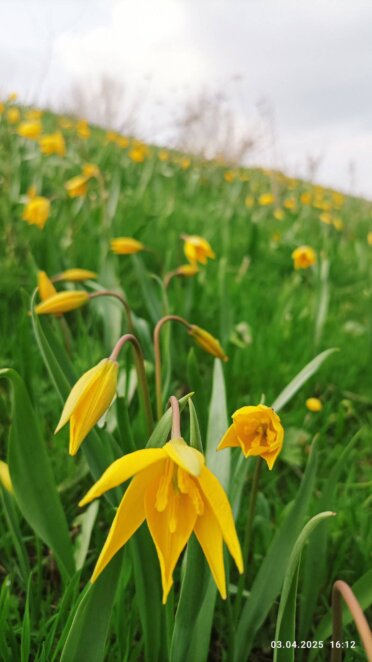 Яскраво-жовті квіти, які рідко можна зустріти в дикій природі, помітив місцевий житель Олександр Ванжа. Чоловік зафіксував цю красу на фото й поділився нею у соцмережах. На знімках видно, як на зеленому схилі розкинулася справжня весняна казка — десятки сонячних тюльпанів тягнуться до неба, утворюючи живий килим серед дикої природи.