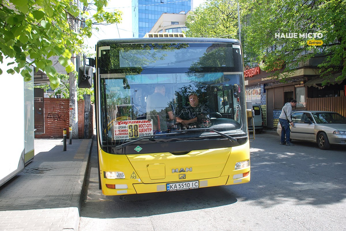 Пан В’ячеслав працює водієм автобуса вже близько 20 років. Зараз він везе пасажирів із центру Дніпра на масив Лівобережний за кермом просторого та комфортабельного автобуса №38.
