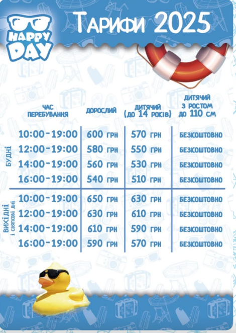 Адміністрація аквапарку застерігає: у разі погіршення погоди можливе часткове відкриття комплексу або зміни у графіку роботи атракціонів і фудкортів. Всі оновлення публікуються на офіційних сторінках Happy Day у соцмережах.