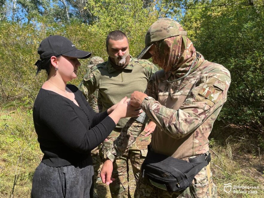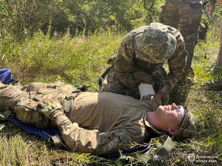 «А основи тактичної медицини, а саме, як накладати турнікети та надавати першу домедичну допомогу, повинен знати кожен дніпрянин. Ці знання у випадку надзвичайної ситуації допоможуть врятувати життя не лише собі, але й іншим людям. Вишколи ми проводимо щомісяця з представниками ІІІ штурмової бригади та ГО «Центурія». До цього ми проводили перший рівень та пройшли 4 вишколи. Це вже другий рівень, який передбачає більше тактичних дій, роботу двійками та трійками, а також елементи змагання, а саме, імітування ближнього бою між командами у наближених до польових умовах», — розповів директор КП «Молодіжний центр Дніпра» Дніпровської міської ради Сергій Засядьвовк.