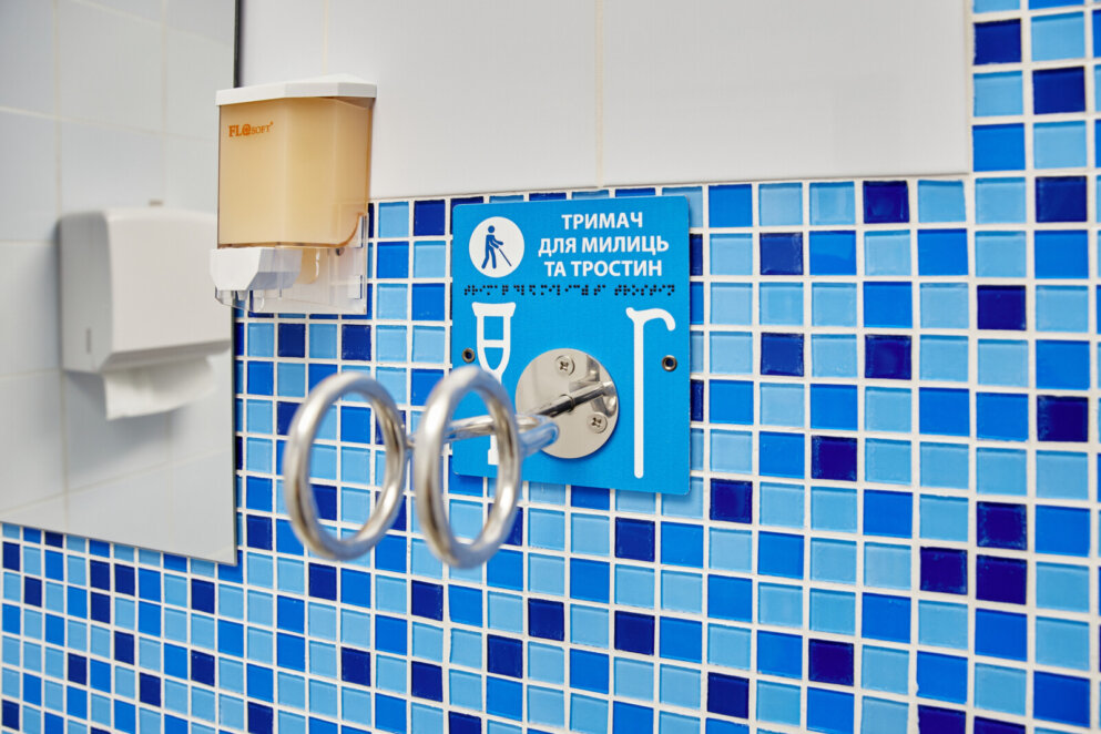 У компанії подбали про те, щоб відділення відповідало принципам доступності. Простір облаштовано за стандартами безбар’єрності: тактильна плитка, широкий вхід без порогу, дублювання написів шрифтом Брайля тощо.
