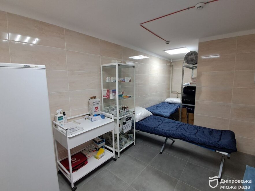 Також перечекати повітряну тривогу можна у центрах первинної допомоги. Одне з укриттів розташоване в амбулаторії, яка обслуговує понад 17 тисяч мешканців Дніпра. Приміщення обладнане місцями для сидіння, доступом до Wi-Fi, запасами питної та технічної води.