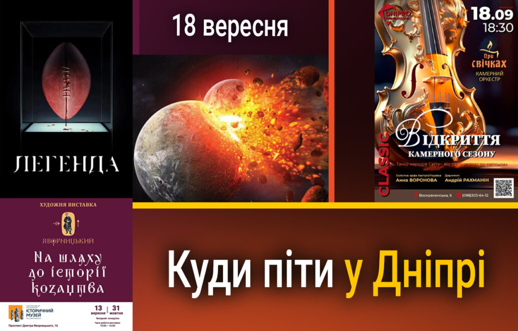 18 вересня відзначають Всесвітній день корпоративної культури. Віряни вшановують пам’ять святого преподобного Євменія, єпископа Гортинського. До Нового року залишилося 104 дні. Куди піти у Дніпрі 18 вересня, знає “Наше Місто”.