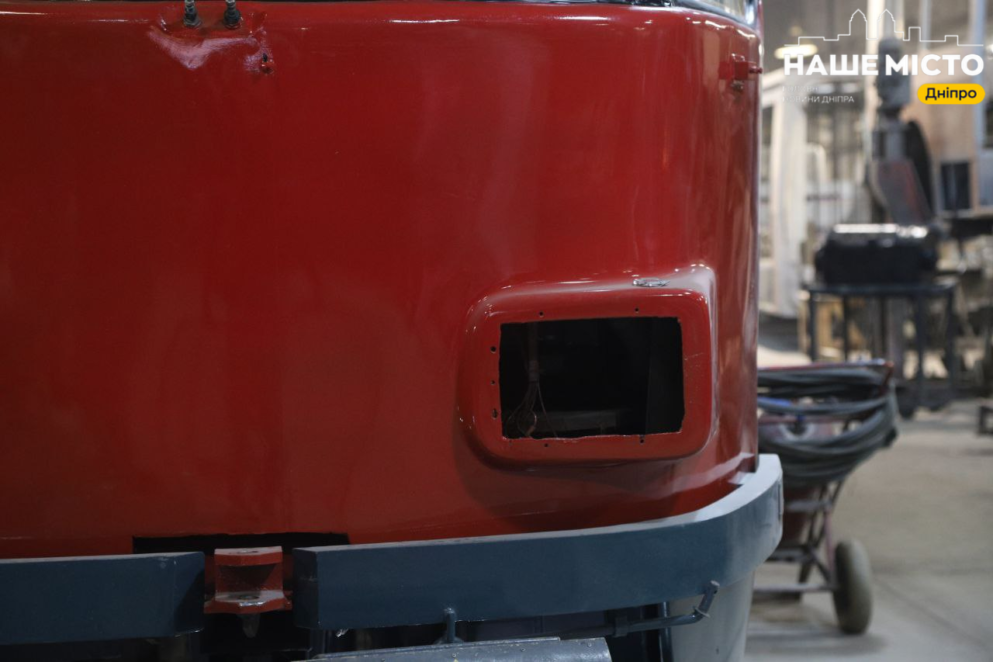 Символічно, що вагони прибувають до Дніпра в синьо-жовтих кольорах – саме таким є прапор Лейпцига, міста-партнера, яке активно підтримує Україну у час війни. А вже тут, у вагоноремонтній майстерні, їх перефарбовують у червоний – офіційний колір Дніпровського бренд-коду. До речі, Лейпцигські вагони дуже легко впізнати серед інших. У них фари квадратної форми.