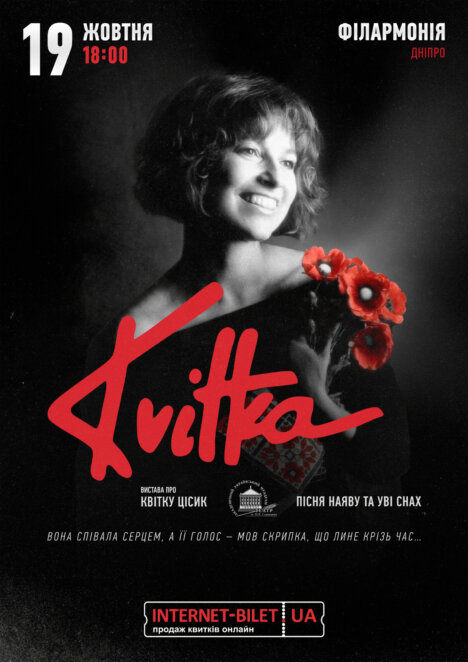 19 жовтня у Дніпрі о 18.00 у філармонії не пропустіть показ виняткової вистави «KVITKA», що стала світовою прем’єрою — першою у світі постановкою про кохання і долю славетної американської співачки з українським серцем.