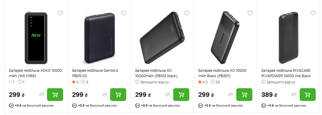 Ціни на маркетплейсах стартують від 299 до за павербанк місткістю 10 000 mAh.