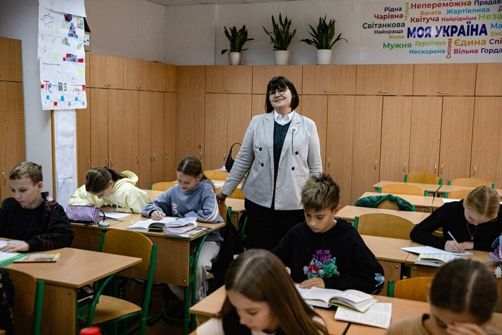 – Звісно, якщо діти приходять під час спеки, скажімо так, майже голі – тобто у топіках, просимо батьків звернути на це увагу та провести бесіду, – пояснює Алла Остроумова. – А ось у шортах – будь ласка. Теж саме стосується макіяжу – ми не маємо права робити зауваження, навіть якщо дівчата фарбують губи у чорний колір. Те ж саме переважно стосується вчителів – ніяких спеціальних вимог до зовнішнього вигляду, все у межах розумного. До 2022 року для класів, які займалися за програмою «Інтелект України», в нас були деякі особливі елементи одягу. Але потім від цього відмовились. Ми часто бігаємо в укриття, дітям має бути зручно в їхній одежі.