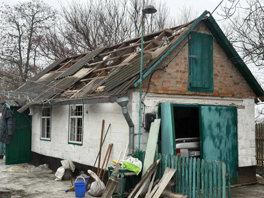 «Усе розбито: кухня, вхідні двері вирвало й кинуло на підлогу, скла дуже багато, вікна побиті. Посуд, консервація — все порозліталося. Найстрашніше — це дах. На подвір’ї літня кухня з гаражем, усе пошкоджене», — каже жінка.