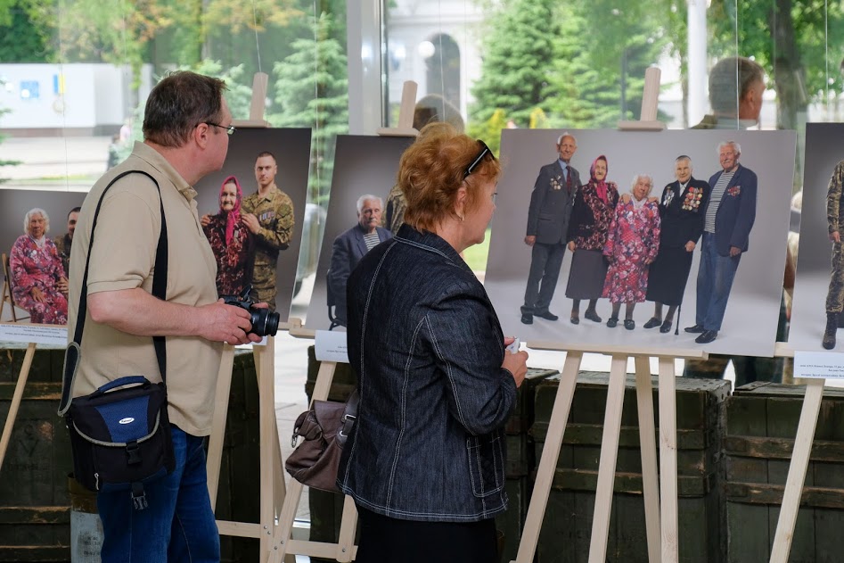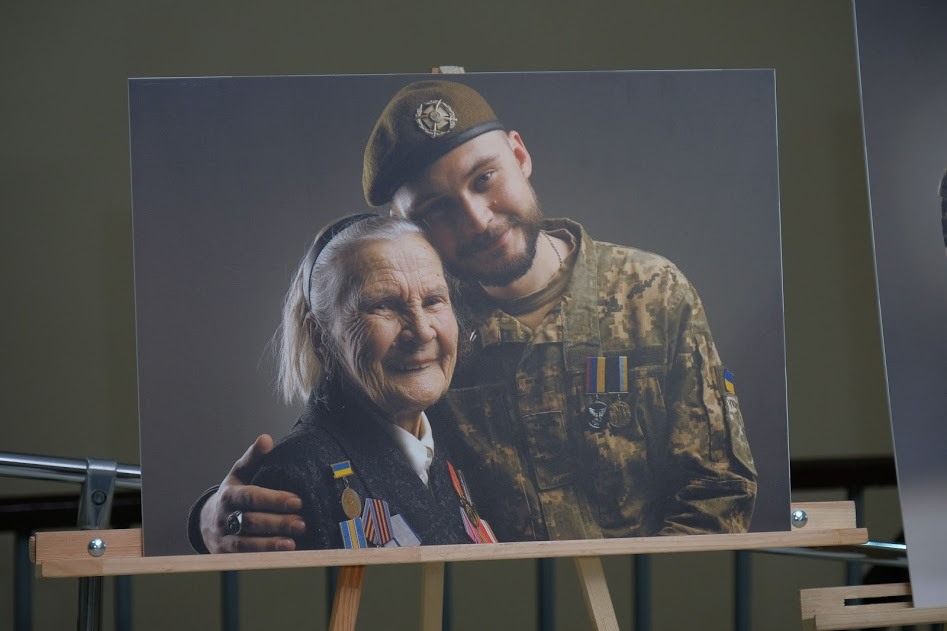 На виставці представлено 20 світлин. Це фото в парі: ветеран АТО та учасник Другої світової.