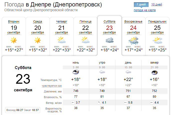 В Днепре температура воздуха 20 сентября составит 25-30 °C, преимущественно без осадков. 21 сентября ожидается переменная облачность, с температурой воздуха 25-30 °C. Пятница также еще порадует теплыми деньками – 25-30 °C. Об этом сообщается на «Синоптике».