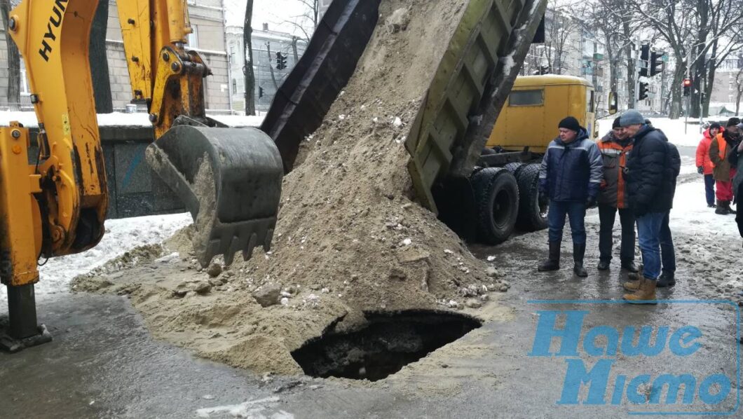 Сотрудники КП «Днепрводоканал» засыпали уже второй провал по улице Гоголя. Частная компания «Днепрогаз» не смогла узнать причины образования ямы.