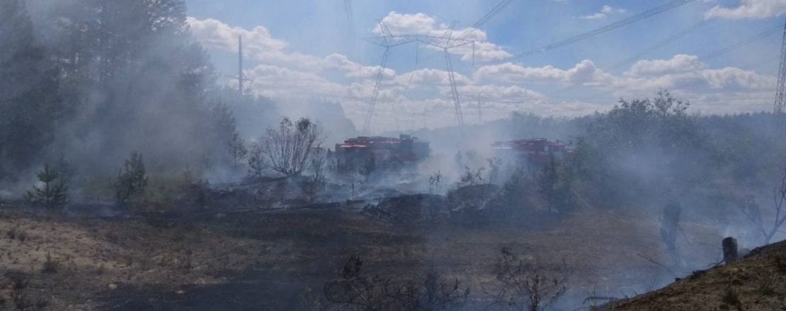 Пожар в Чернобыльской зоне отчуждения вырос до площади свыше 100 гектаров. В результате возгорания травы, пламя перекинулось на деревья, превратившись в настоящую стену огня. Тушение пожара осложняет повышенный радиационный фон, передает корреспондент «Наше Місто».