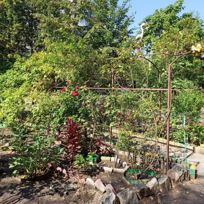 Двор на Яскравой действительно стал ярким и красочным. Но одними розами городской оазис не ограничился.