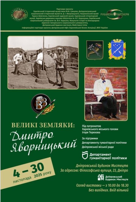 В августе 2025 года ко Дню независимости Украины эта выставка открылась в стенах Харьковского национального университета имени В.Н.Каразина, выпускником которого был Дмитрий Иванович Яворницкий.