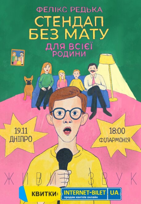 Феликс Редька уезжает в тур без мата! Во времена, когда стендап ассоциируется с матерью и грязью, комик из города Сумы решил создать концерт без нецензурной лексики, чтобы прийти на него смогли дети, родители, дедушки, а самое главное бабушки. Вас ждет час нового материала, которого не было на ютубе и полчаса интерактивного аукциона на армию.