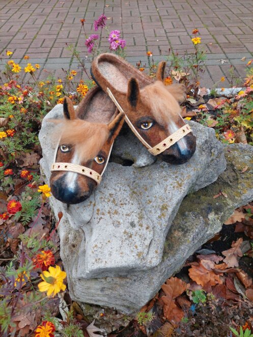 Ольга Петренко уже давно создаёт изделия из натуральной шерсти. Накануне Года Лошади она решила сделать тапочки, перед которыми невозможно устоять. Хотя и стоят они недешево – 3 тысячи гривен за пару. Кроме шерсти, она использовала флис, кожу, промышленную подошву и дополнительную стельку. Все свои тапочки мастерица производит в единственном экземпляре, они выходят очень красивыми и пользуются спросом.